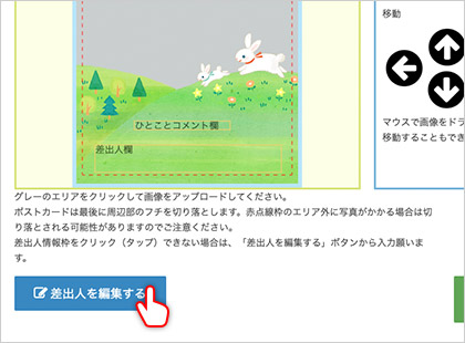 「差出人を編集」「ひとことコメント欄・文章選択(テンプレートによる)」を画面表示に従って入力します。