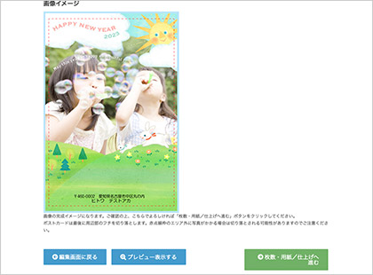 「上記内容で完成イメージを確認する」ボタンをクリックし、完成イメージを確認します。